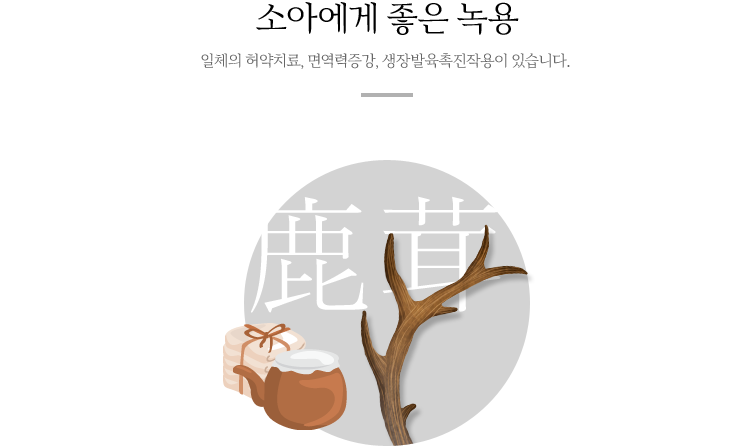 녹용은 일체의 허약치료. 면역력증강, 생장발육촉진에 탁월한 효과가 있습니다.